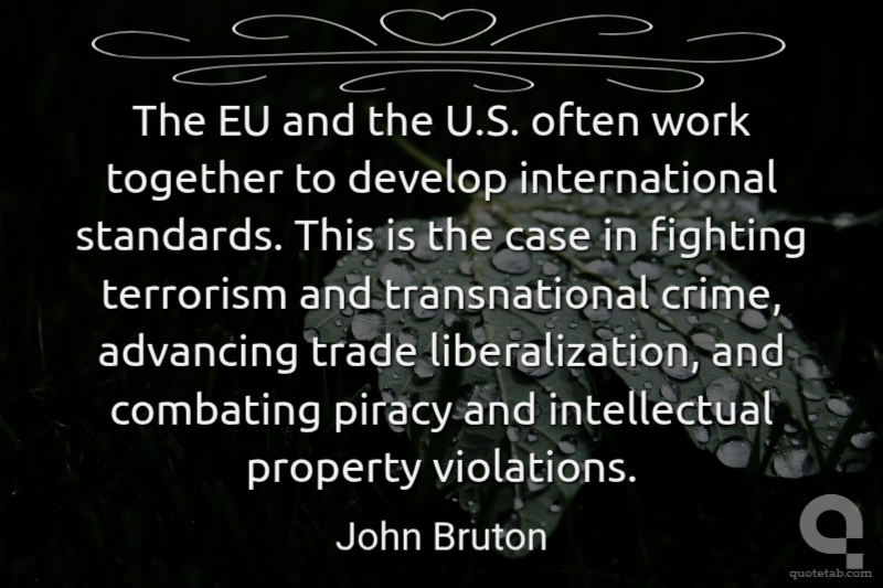 The EU and the U.S. often work together to develop international standards. This is the case in fighting terrorism and transnational crime, advancing trade liberalization, and combating piracy and intellectual property violations.