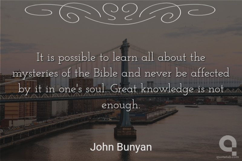 It is possible to learn all about the mysteries of the Bible and never be affected by it in one's soul. Great knowledge is not enough.