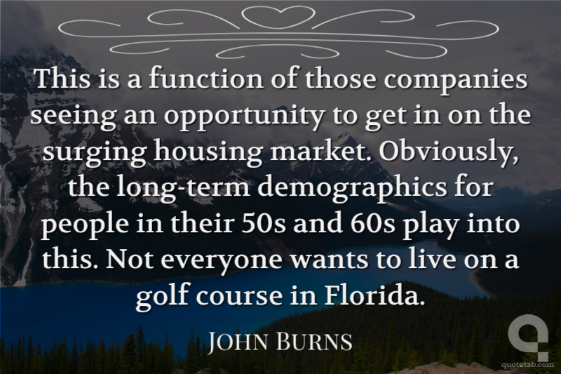 This is a function of those companies seeing an opportunity to get in on the surging housing market. Obviously, the long-term demographics for people in their 50s and 60s play into this. Not everyone wants to live on a golf course in Florida.