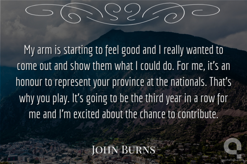 My arm is starting to feel good and I really wanted to come out and show them what I could do. For me, it's an honour to represent your province at the nationals. That's why you play. It's going to be the third year in a row for me and I'm excited about the chance to contribute.