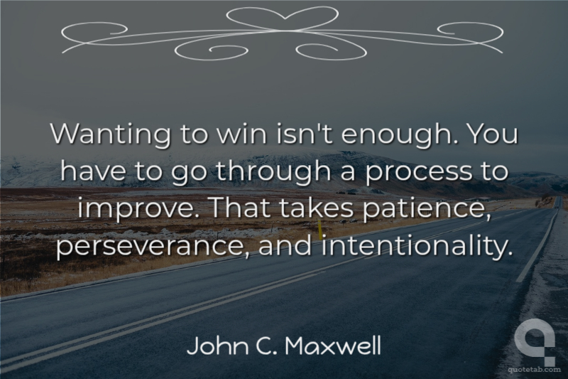 Wanting to win isn't enough. You have to go through a process to improve. That takes patience, perseverance, and intentionality.