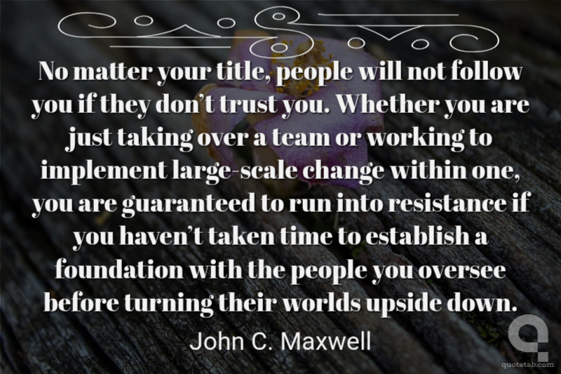 No matter your title, people will not follow you if they don’t trust you. Whether you are just taking over a team or working to implement large-scale change within one, you are guaranteed to run into resistance if you haven’t taken time to establish a foundation with the people you oversee before turning their worlds upside down.