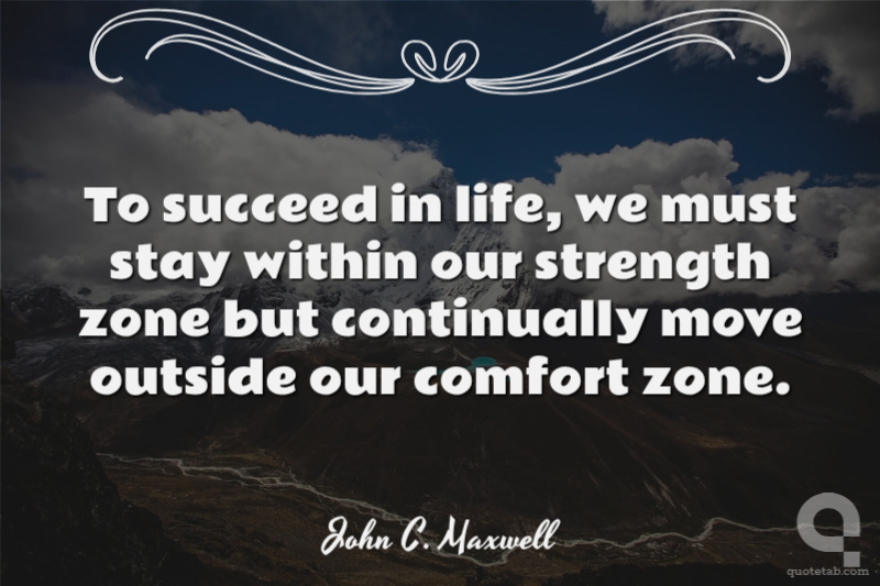 To succeed in life, we must stay within our strength zone but continually move outside our comfort zone.