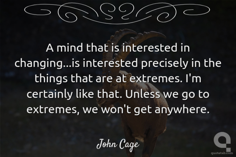A mind that is interested in changing...is interested precisely in the things that are at extremes. I'm certainly like that. Unless we go to extremes, we won't get anywhere.