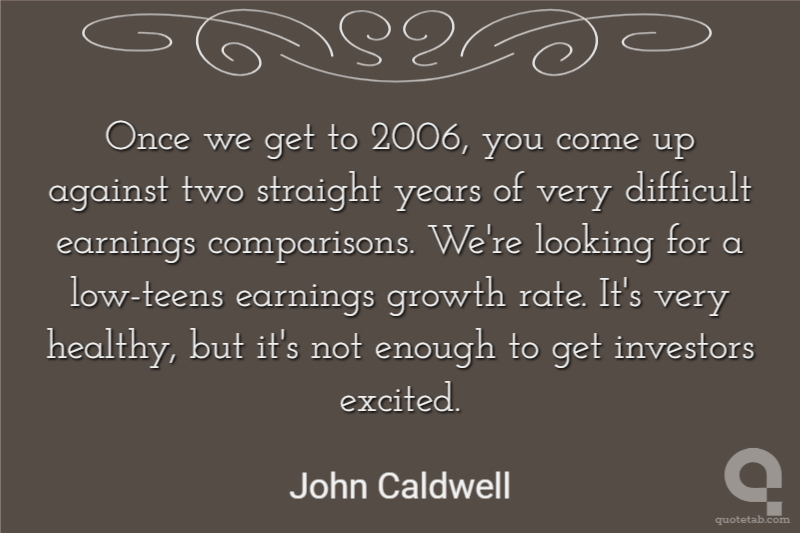Once we get to 2006, you come up against two straight years of very difficult earnings comparisons. We're looking for a low-teens earnings growth rate. It's very healthy, but it's not enough to get investors excited.