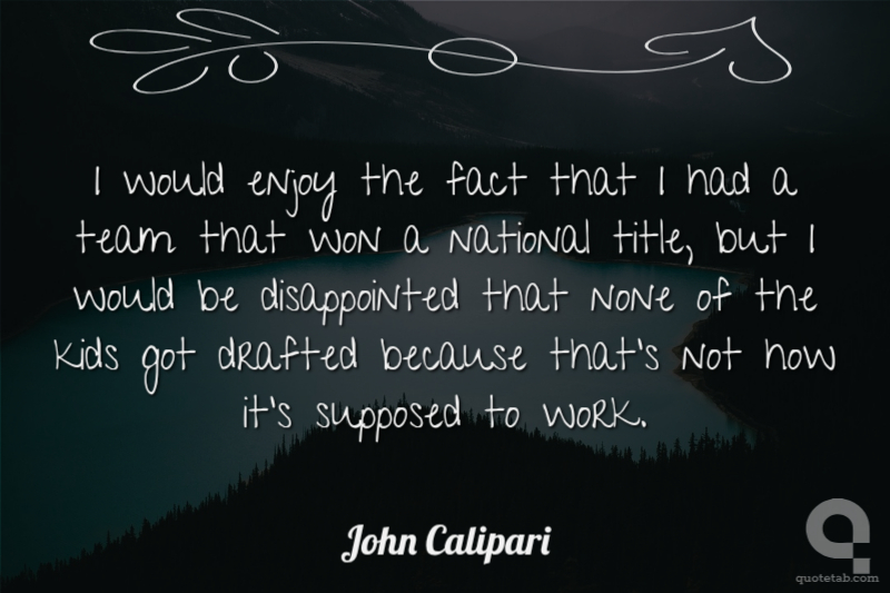 I would enjoy the fact that I had a team that won a national title, but I would be disappointed that none of the kids got drafted because that's not how it's supposed to work.