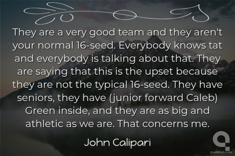 They are a very good team and they aren't your normal 16-seed. Everybody knows tat and everybody is talking about that. They are saying that this is the upset because they are not the typical 16-seed. They have seniors, they have (junior forward Caleb) Green inside, and they are as big and athletic as we are. That concerns me.
