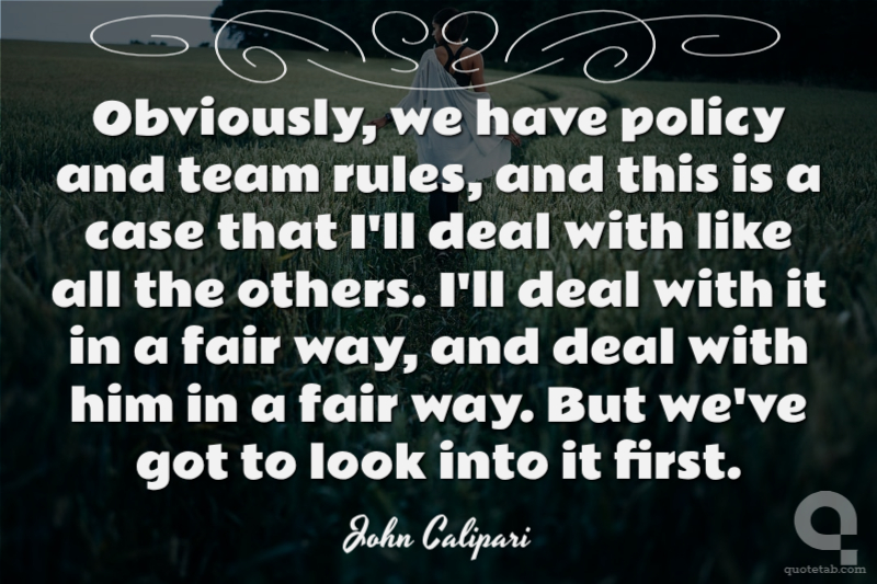 Obviously, we have policy and team rules, and this is a case that I'll deal with like all the others. I'll deal with it in a fair way, and deal with him in a fair way. But we've got to look into it first.