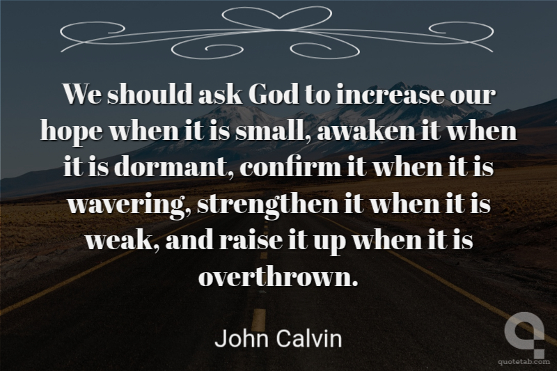 We should ask God to increase our hope when it is small, awaken it when it is dormant, confirm it when it is wavering, strengthen it when it is weak, and raise it up when it is overthrown.