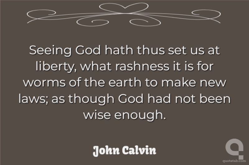 Seeing God hath thus set us at liberty, what rashness it is for worms of the earth to make new laws; as though God had not been wise enough.