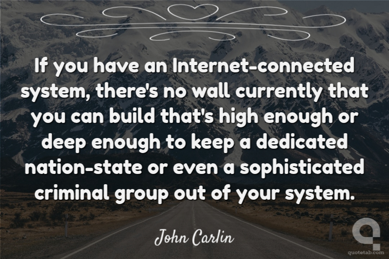 If you have an Internet-connected system, there's no wall currently that you can build that's high enough or deep enough to keep a dedicated nation-state or even a sophisticated criminal group out of your system.