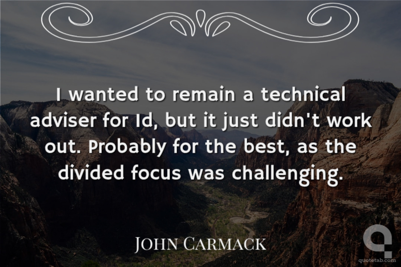 I wanted to remain a technical adviser for Id, but it just didn't work out. Probably for the best, as the divided focus was challenging.