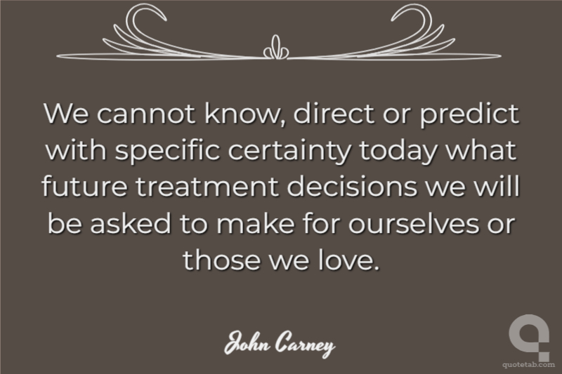 We cannot know, direct or predict with specific certainty today what future treatment decisions we will be asked to make for ourselves or those we love.