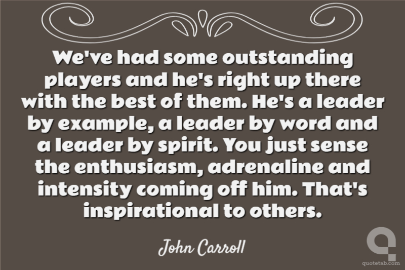 We've had some outstanding players and he's right up there with the best of them. He's a leader by example, a leader by word and a leader by spirit. You just sense the enthusiasm, adrenaline and intensity coming off him. That's inspirational to others.