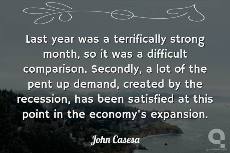 Last year was a terrifically strong month, so it was a difficult comparison. Secondly, a lot of the pent up demand, created by the recession, has been satisfied at this point in the economy's expansion.
