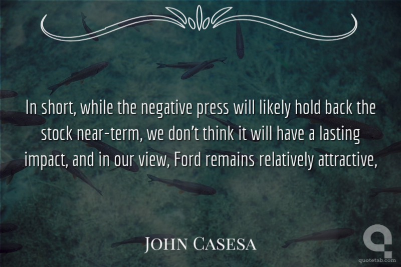 In short, while the negative press will likely hold back the stock near-term, we don't think it will have a lasting impact, and in our view, Ford remains relatively attractive,