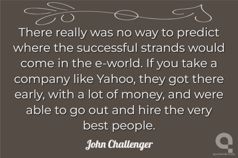 There really was no way to predict where the successful strands would come in the e-world. If you take a company like Yahoo, they got there early, with a lot of money, and were able to go out and hire the very best people.
