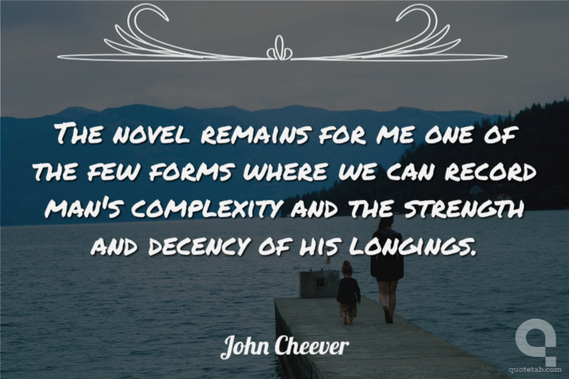 The novel remains for me one of the few forms where we can record man's complexity and the strength and decency of his longings.
