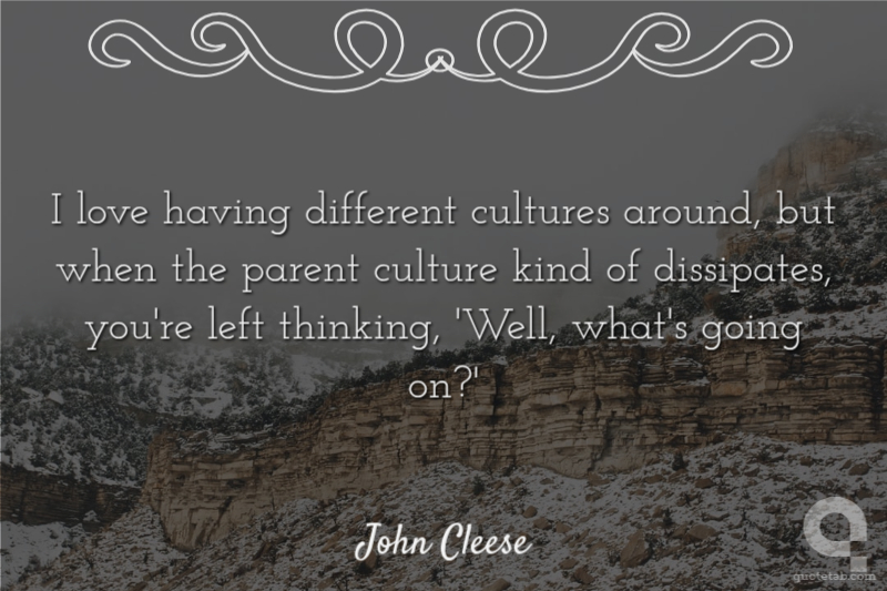 I love having different cultures around, but when the parent culture kind of dissipates, you're left thinking, 'Well, what's going on?'