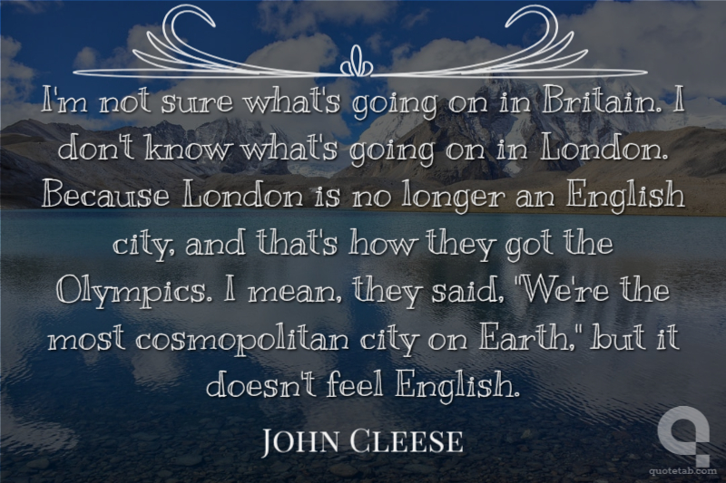 I'm not sure what's going on in Britain. I don't know what's going on in London. Because London is no longer an English city, and that's how they got the Olympics. I mean, they said, "We're the most cosmopolitan city on Earth," but it doesn't feel English.
