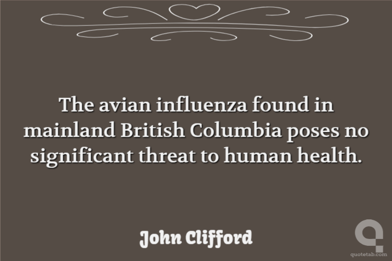 The avian influenza found in mainland British Columbia poses no significant threat to human health.