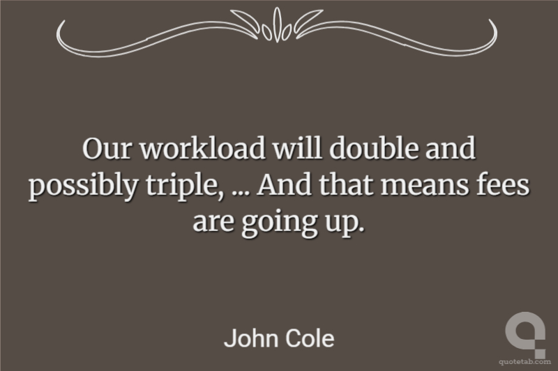 Our workload will double and possibly triple, ... And that means fees are going up.