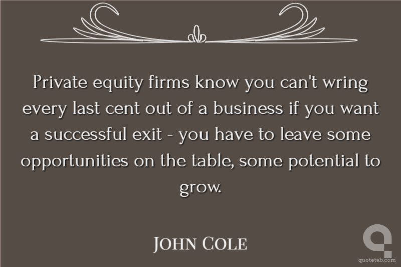 Private equity firms know you can't wring every last cent out of a business if you want a successful exit - you have to leave some opportunities on the table, some potential to grow.