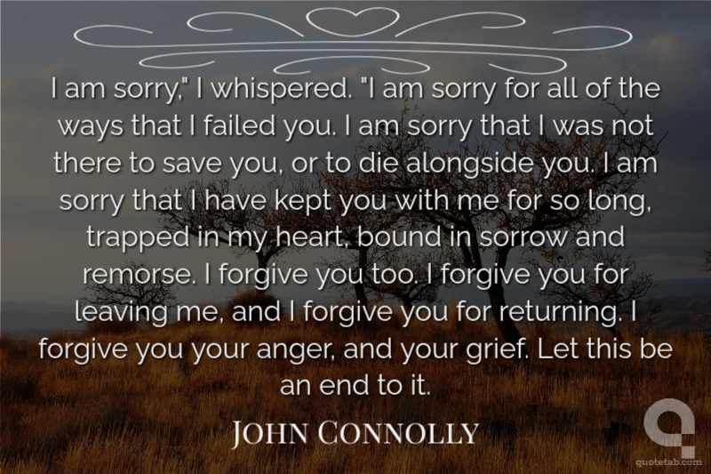 I am sorry," I whispered. "I am sorry for all of the ways that I failed you. I am sorry that I was not there to save you, or to die alongside you. I am sorry that I have kept you with me for so long, trapped in my heart, bound in sorrow and remorse. I forgive you too. I forgive you for leaving me, and I forgive you for returning. I forgive you your anger, and your grief. Let this be an end to it.