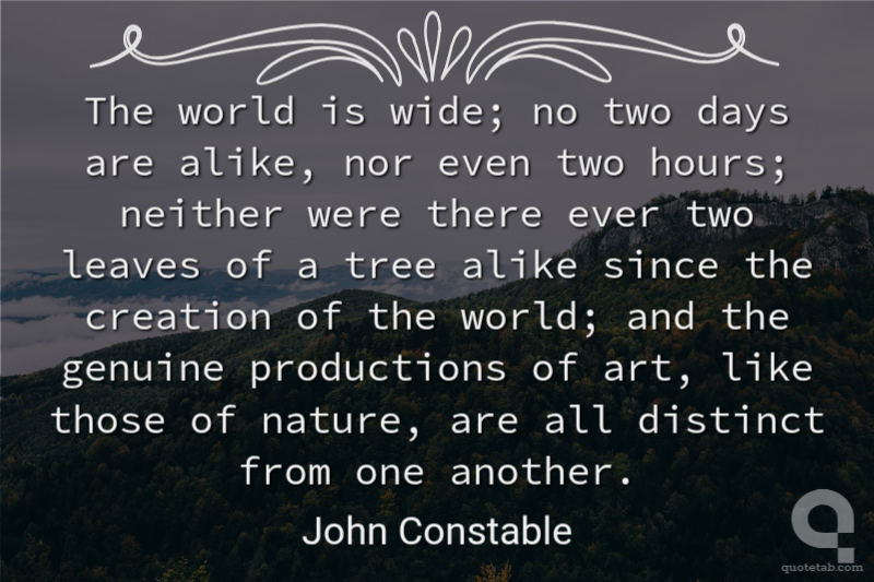 The world is wide; no two days are alike, nor even two hours; neither were there ever two leaves of a tree alike since the creation of the world; and the genuine productions of art, like those of nature, are all distinct from one another.