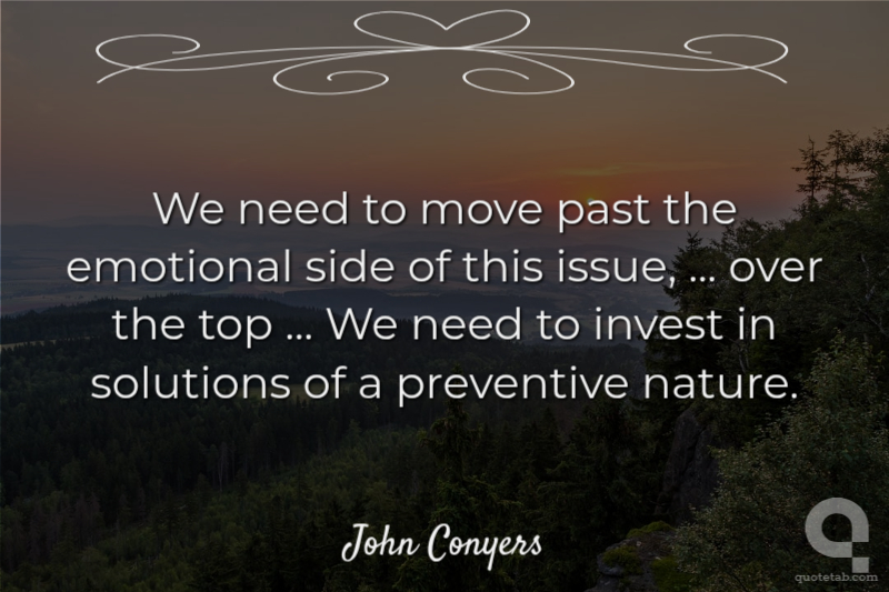 We need to move past the emotional side of this issue, ... over the top ... We need to invest in solutions of a preventive nature.