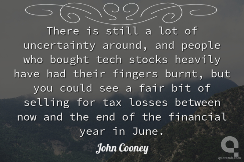 There is still a lot of uncertainty around, and people who bought tech stocks heavily have had their fingers burnt, but you could see a fair bit of selling for tax losses between now and the end of the financial year in June.