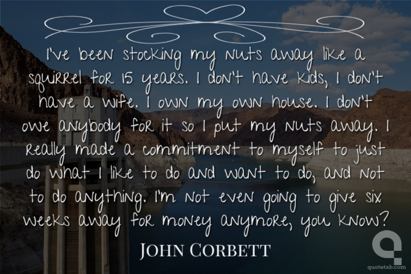 I've been stocking my nuts away like a squirrel for 15 years. I don't have kids, I don't have a wife. I own my own house. I don't owe anybody for it so I put my nuts away. I really made a commitment to myself to just do what I like to do and want to do, and not to do anything. I'm not even going to give six weeks away for money anymore, you know?