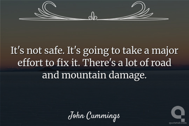 It's not safe. It's going to take a major effort to fix it. There's a lot of road and mountain damage.