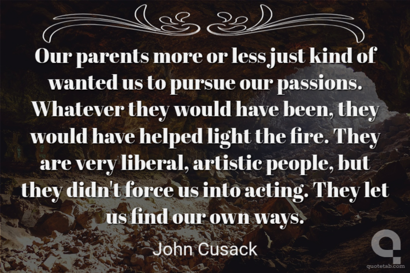 Our parents more or less just kind of wanted us to pursue our passions. Whatever they would have been, they would have helped light the fire. They are very liberal, artistic people, but they didn't force us into acting. They let us find our own ways.