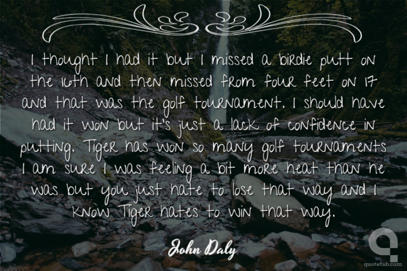 I thought I had it but I missed a birdie putt on the 16th and then missed from four feet on 17 and that was the golf tournament. I should have had it won but it's just a lack of confidence in putting. Tiger has won so many golf tournaments I am sure I was feeling a bit more heat than he was but you just hate to lose that way and I know Tiger hates to win that way.