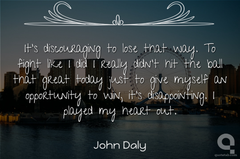 It's discouraging to lose that way. To fight like I did I really didn't hit the ball that great today just to give myself an opportunity to win, it's disappointing. I played my heart out.