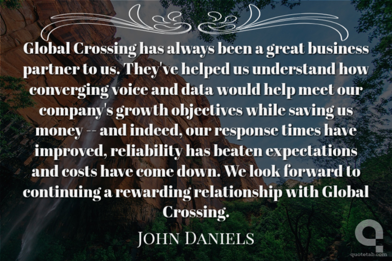 Global Crossing has always been a great business partner to us. They've helped us understand how converging voice and data would help meet our company's growth objectives while saving us money -- and indeed, our response times have improved, reliability has beaten expectations and costs have come down. We look forward to continuing a rewarding relationship with Global Crossing.
