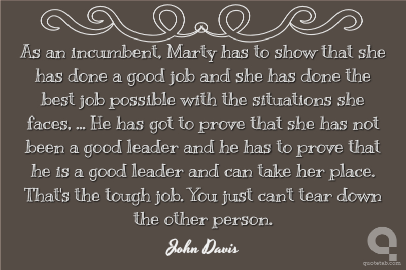 As an incumbent, Marty has to show that she has done a good job and she has done the best job possible with the situations she faces, ... He has got to prove that she has not been a good leader and he has to prove that he is a good leader and can take her place. That's the tough job. You just can't tear down the other person.