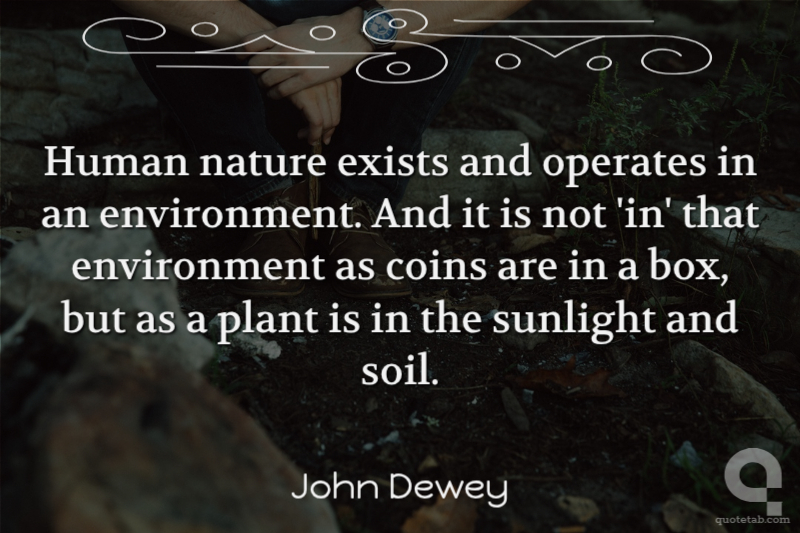 Human nature exists and operates in an environment. And it is not 'in' that environment as coins are in a box, but as a plant is in the sunlight and soil.