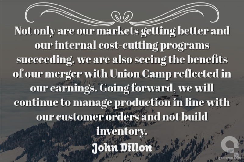 Not only are our markets getting better and our internal cost-cutting programs succeeding, we are also seeing the benefits of our merger with Union Camp reflected in our earnings. Going forward, we will continue to manage production in line with our customer orders and not build inventory.
