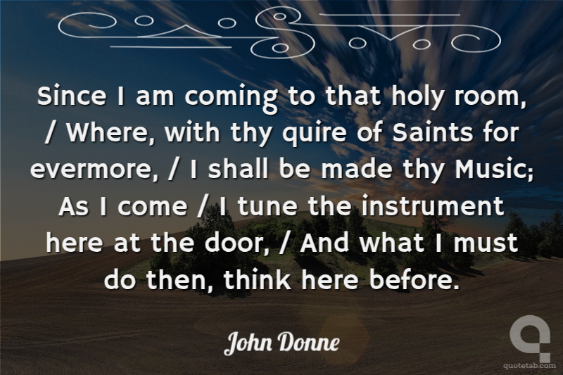 Since I am coming to that holy room, / Where, with thy quire of Saints for evermore, / I shall be made thy Music; As I come / I tune the instrument here at the door, / And what I must do then, think here before.