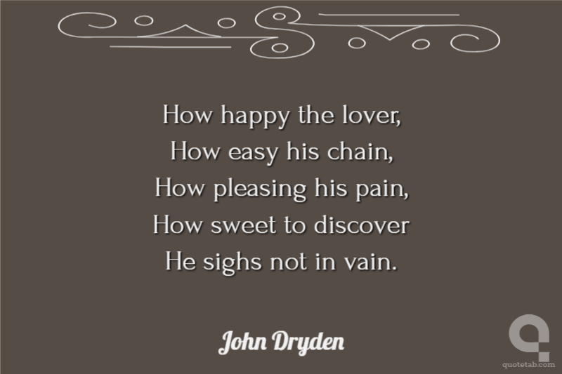 How happy the lover, How easy his chain, How pleasing his pain, How sweet to discover He sighs not in vain.