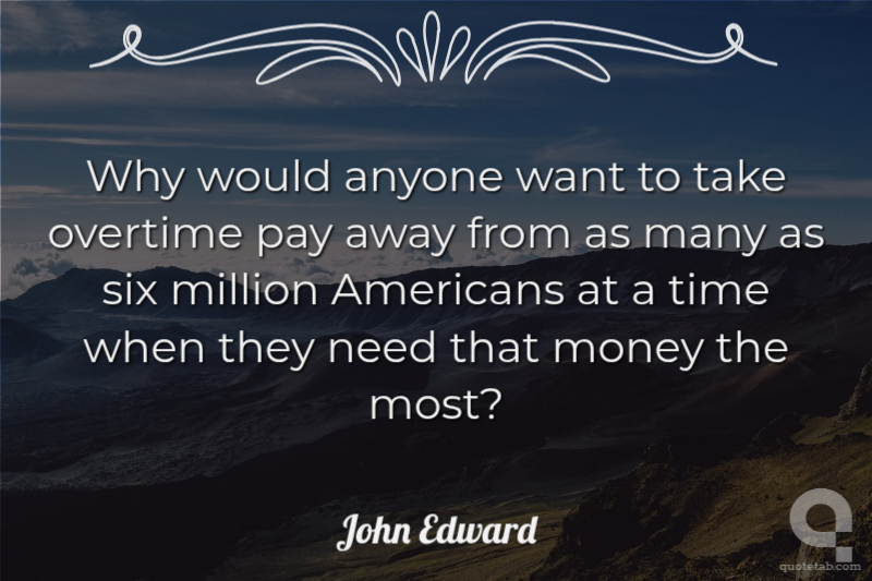 Why would anyone want to take overtime pay away from as many as six million Americans at a time when they need that money the most?