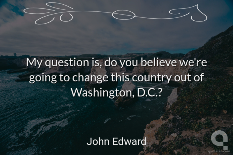 My question is, do you believe we're going to change this country out of Washington, D.C.?