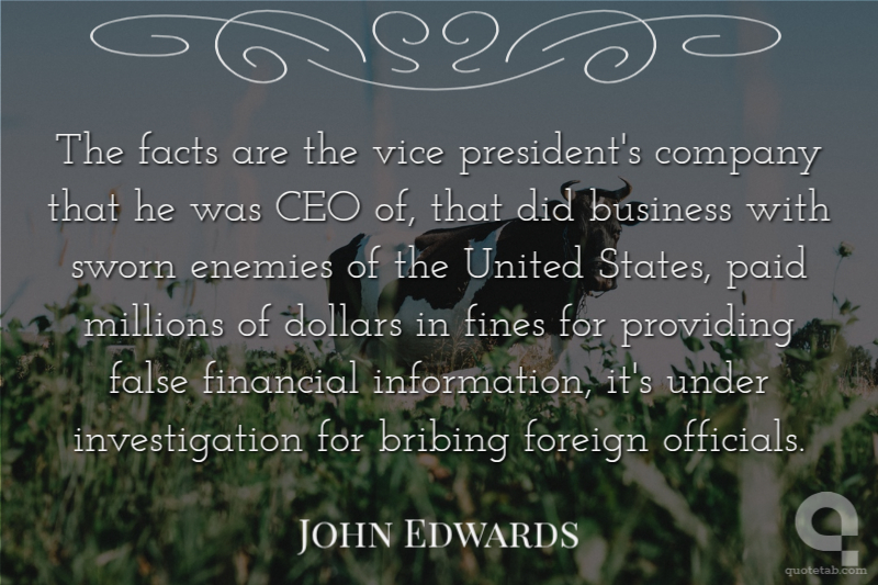 The facts are the vice president's company that he was CEO of, that did business with sworn enemies of the United States, paid millions of dollars in fines for providing false financial information, it's under investigation for bribing foreign officials.