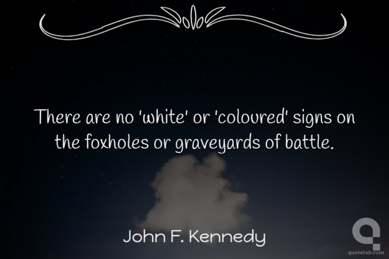 There are no 'white' or 'coloured' signs on the foxholes or graveyards of battle.