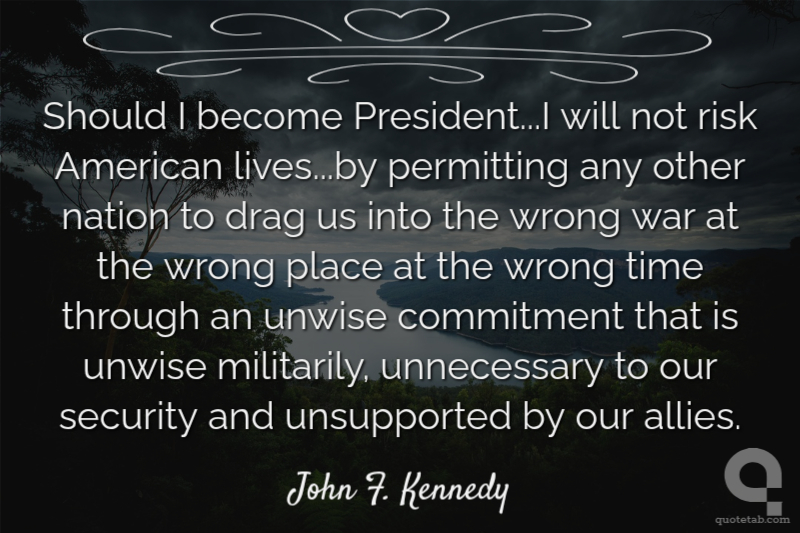 Should I become President...I will not risk American lives...by permitting any other nation to drag us into the wrong war at the wrong place at the wrong time through an unwise commitment that is unwise militarily, unnecessary to our security and unsupported by our allies.