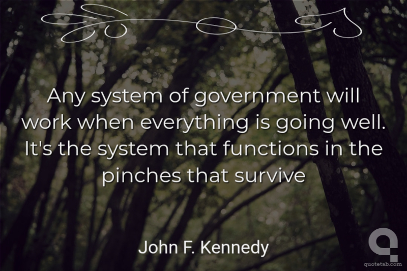 Any system of government will work when everything is going well. It's the system that functions in the pinches that survive