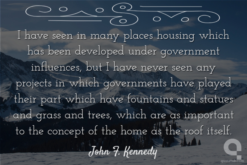 I have seen in many places housing which has been developed under government influences, but I have never seen any projects in which governments have played their part which have fountains and statues and grass and trees, which are as important to the concept of the home as the roof itself.