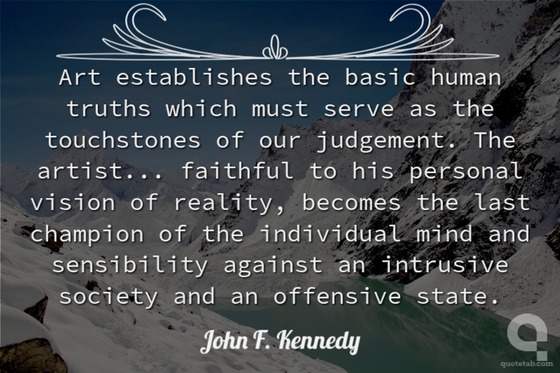 Art establishes the basic human truths which must serve as the touchstones of our judgement. The artist... faithful to his personal vision of reality, becomes the last champion of the individual mind and sensibility against an intrusive society and an offensive state.